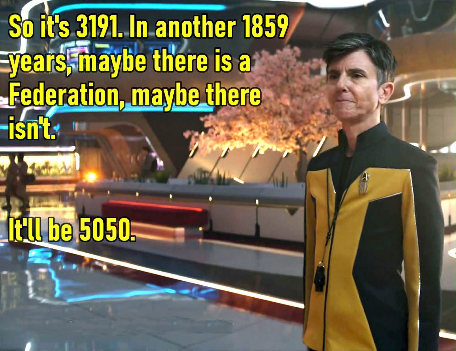 >>218165780The reason why there is no fat-representation is because nobody's fat in the future. It's unacceptable, at least in the military branch of Earth. Disgusting fat slobs will of course still exist, but they won't be accepted into starfleet.