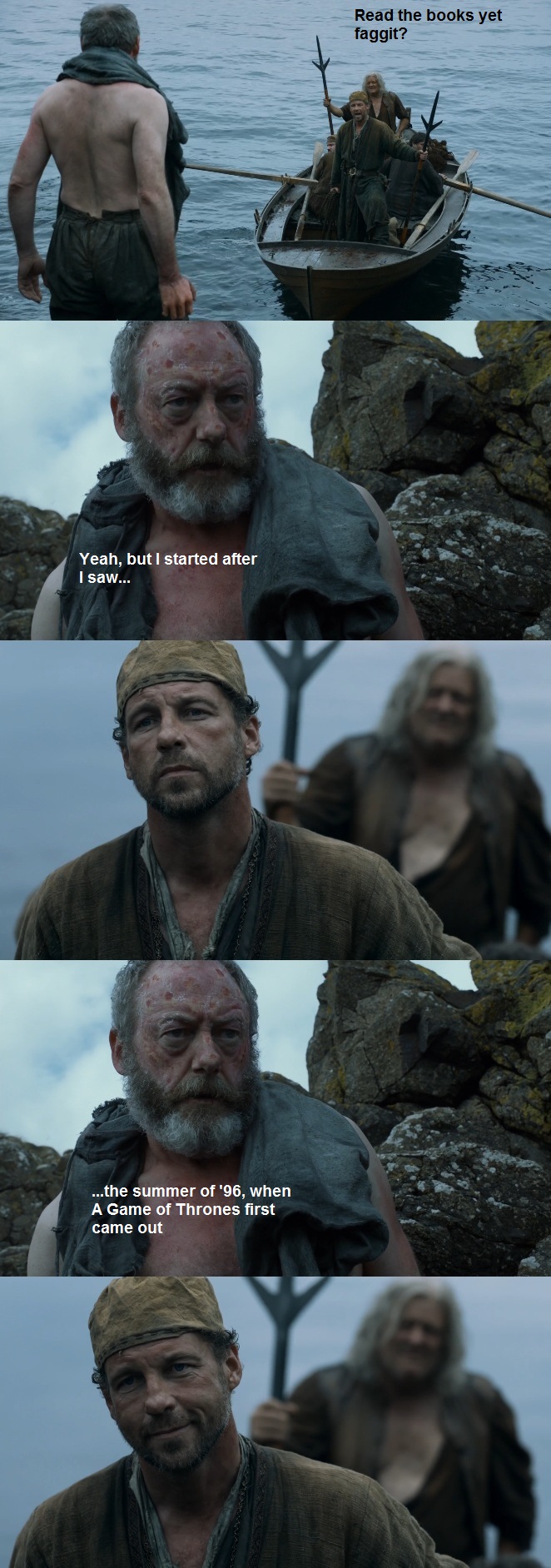 >>218170977My retard ass didn't pick up the gay stuff in book 3 until I looked it up.