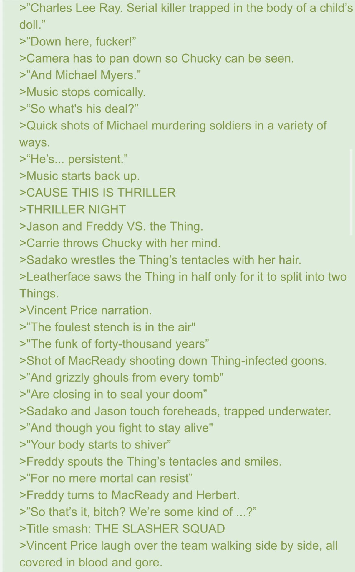 >>218171811What do you mean? A movie where a creepy little girl chases after you and kills random people, then suddenly turns into a hot corpse woman and rapes you? I don't think there are many movies like that.
