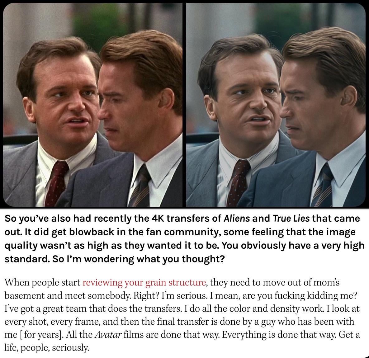 >>218172433Keep in mind, James Cameron lost his fucking mind decades ago. All his "approved" 4Ks are trash-tier.
