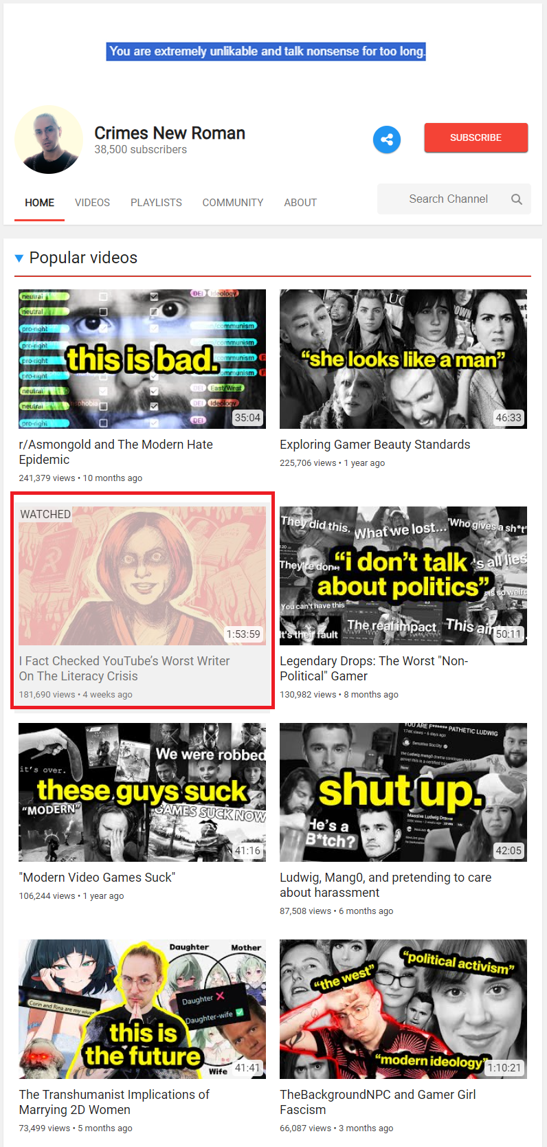 >>218180734>a channel not chanting the party line? IMPOSSIBLE!!!