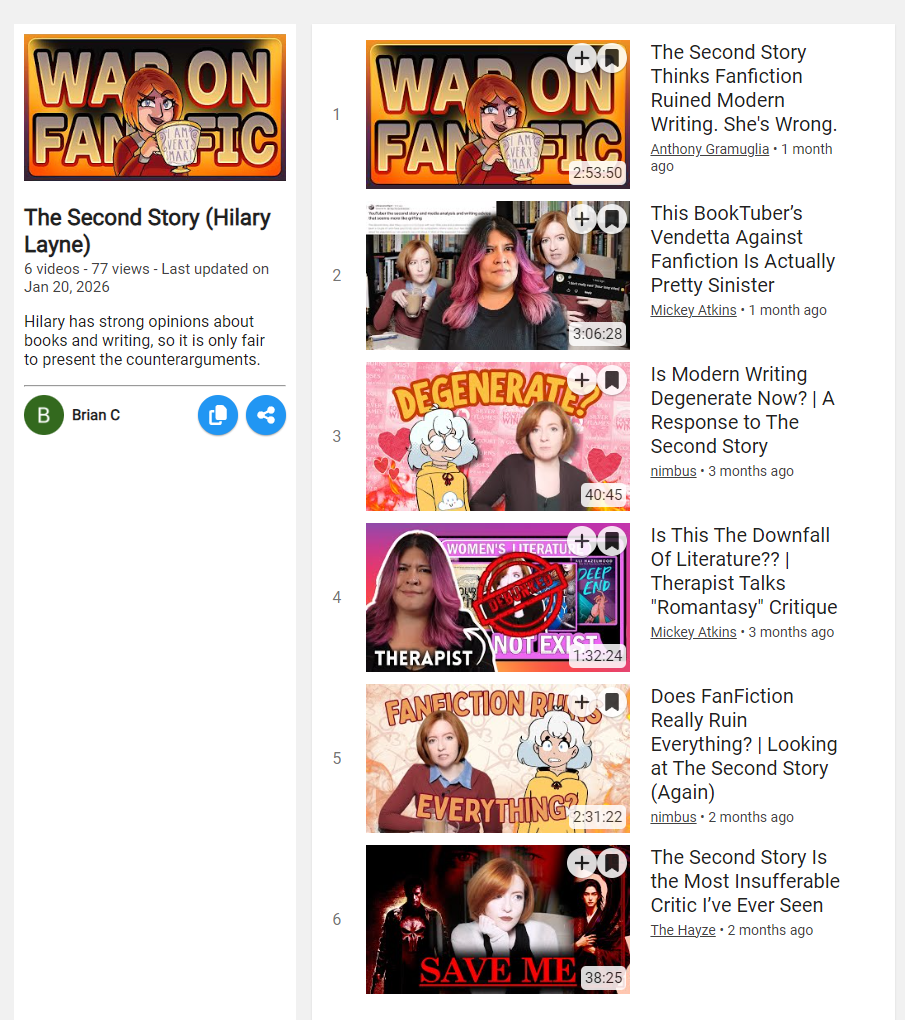 The OP video is funny because she's completely terrified of giving any concrete examples of bad writing so she just makes blanket statements that can apply to whatever the watcher already was thinking of