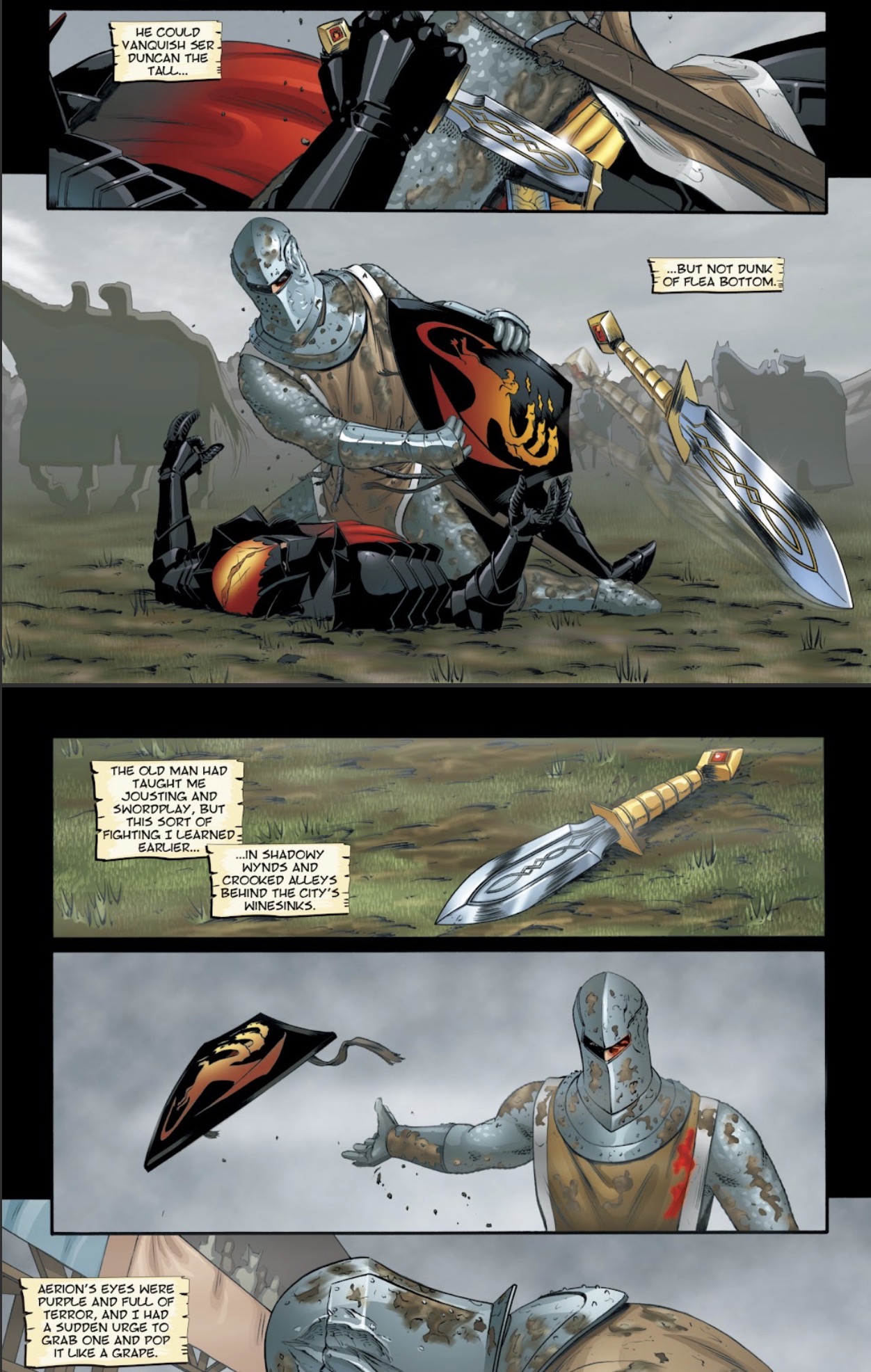 So did Duncan die in the tourney and was brought back to life by the Seven? Also how many times are they going to use the "insufferable teenage Targaryen male pulls some entitled bullshit and ruins everything for everyone" trope?