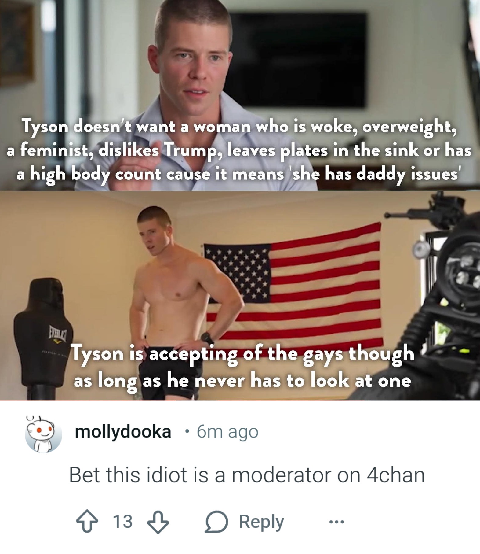 >>218182102Me thinks tyson is a homosexual. What's up with weird fuckers and having a laundry list of prerequisites? I've literally never discussed politics or religion with any of my exes, it just never comes up.