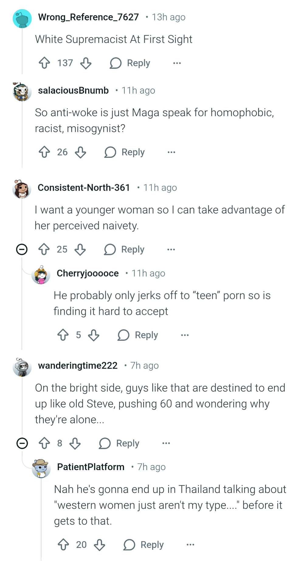 >>218182739You cannot believe the degenerates on reddit m8. There are so many freaks sharing their women over there. Their wiring is all fucked up.