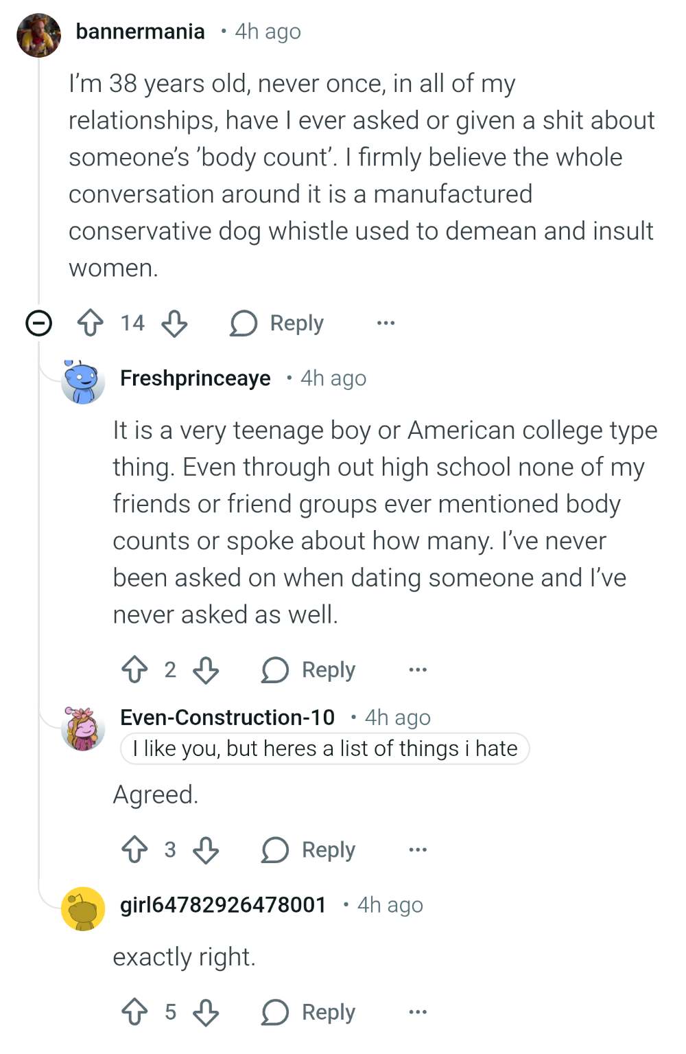 >>218182592>there's literally anything wrong with what he's asking forApparently its weird as a man to care about your partners body count. Chat is this true?