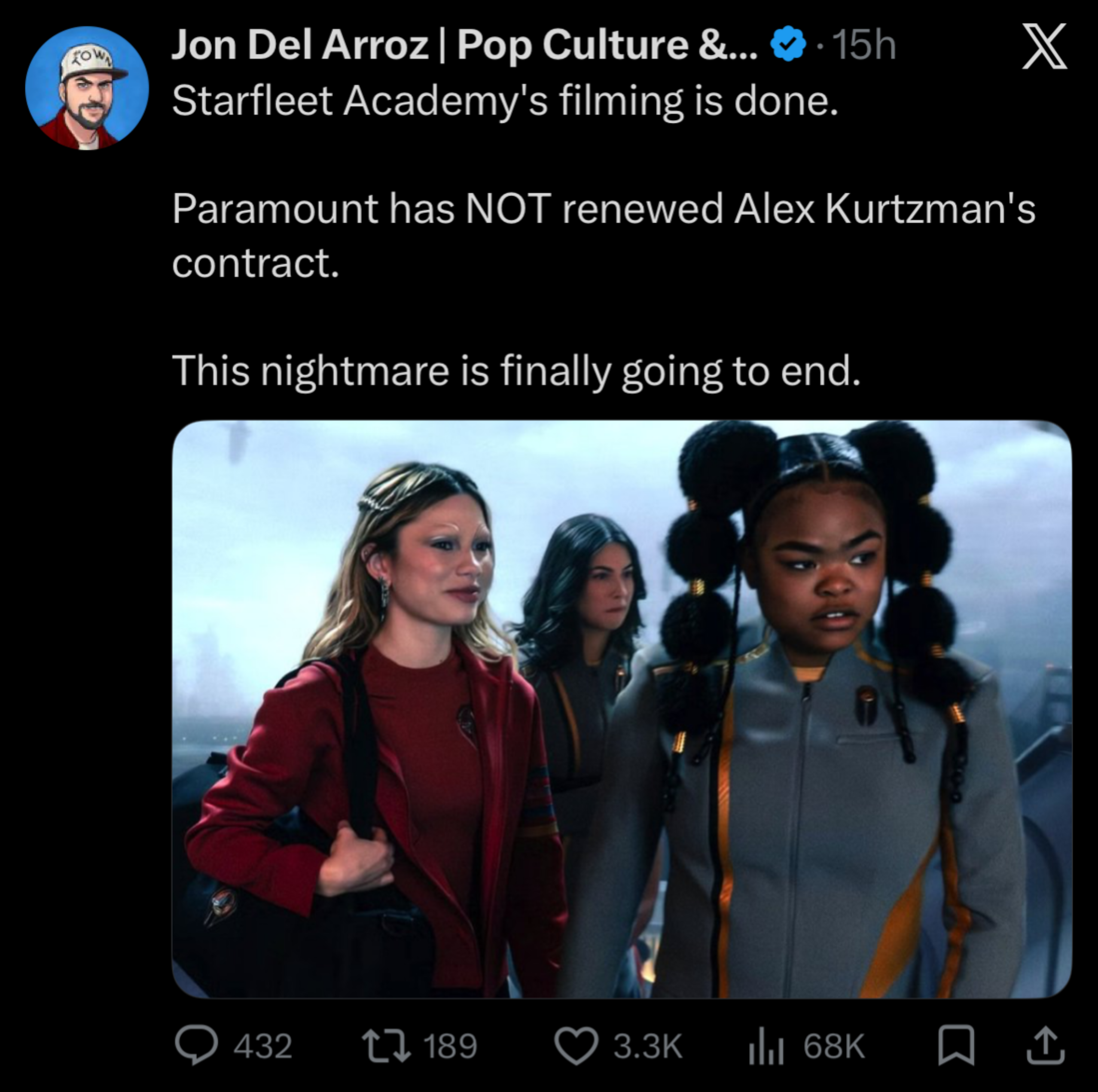>>218181990>Paramount has NOT renewed Alez Kurtzman's contract.But they will.