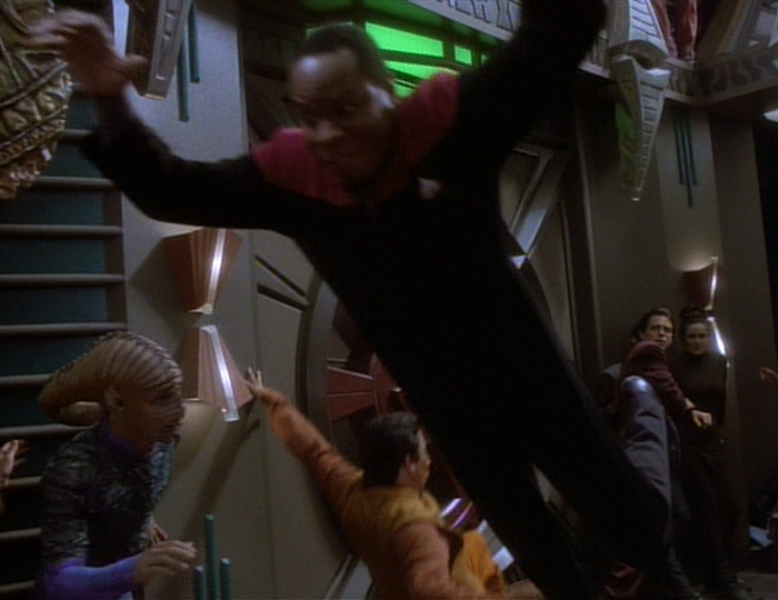 >>218181990>Computer, recreate an awards ceremony from the early 21st century >Disengage censorship protocols >Increase outburst volume and duration 400%>transport Mr LaForge, Worf, Captain Sisko, Jake Sisko and Guinan to the front row, and restrain them with forcefields