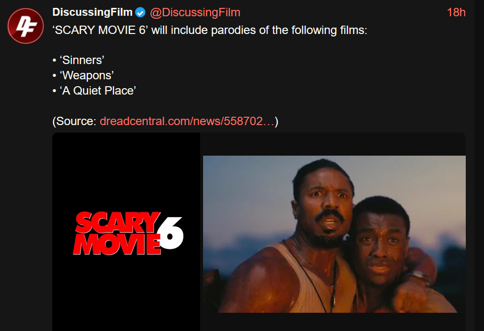 I legit don't see the point of this movie. The entire Scary Movie franchise fell from mediocre to slop after the second entry and no one, as far as I can tell, really cared about the other 3 after that. And now they're making a 6th one? Why? Big nostalgia for mostly crappy franchises, is there?