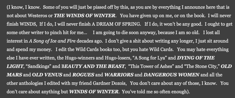 >>218186905>TV show craters so bad after ending was revealed>never ever going to finish because he wants to maintain the idea that his vision is perfectBran the broken was and is cannon