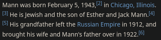 >>218188744Reminder that all the jewposting you see these days comes from groypers which are invariably closeted gay "white" boys under the age of 22 and jeets that run roman statue twitter accounts.So yes he did just find out about Mann today.