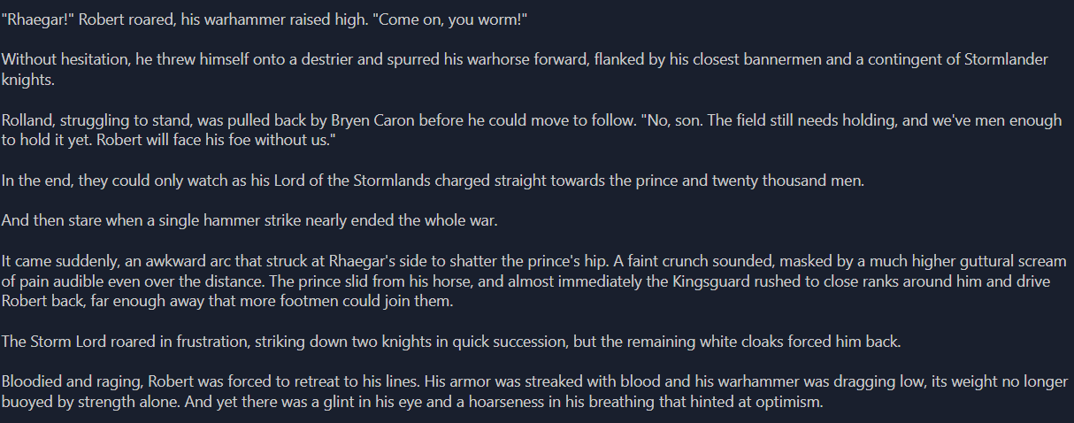 To all the bookfags, what was the most kino moment in the books?I came across this and pissed that the show didnt do this scene justice.https://youtu.be/mQ9XDFiFj8o?si=fJG081HEI04hM_iK