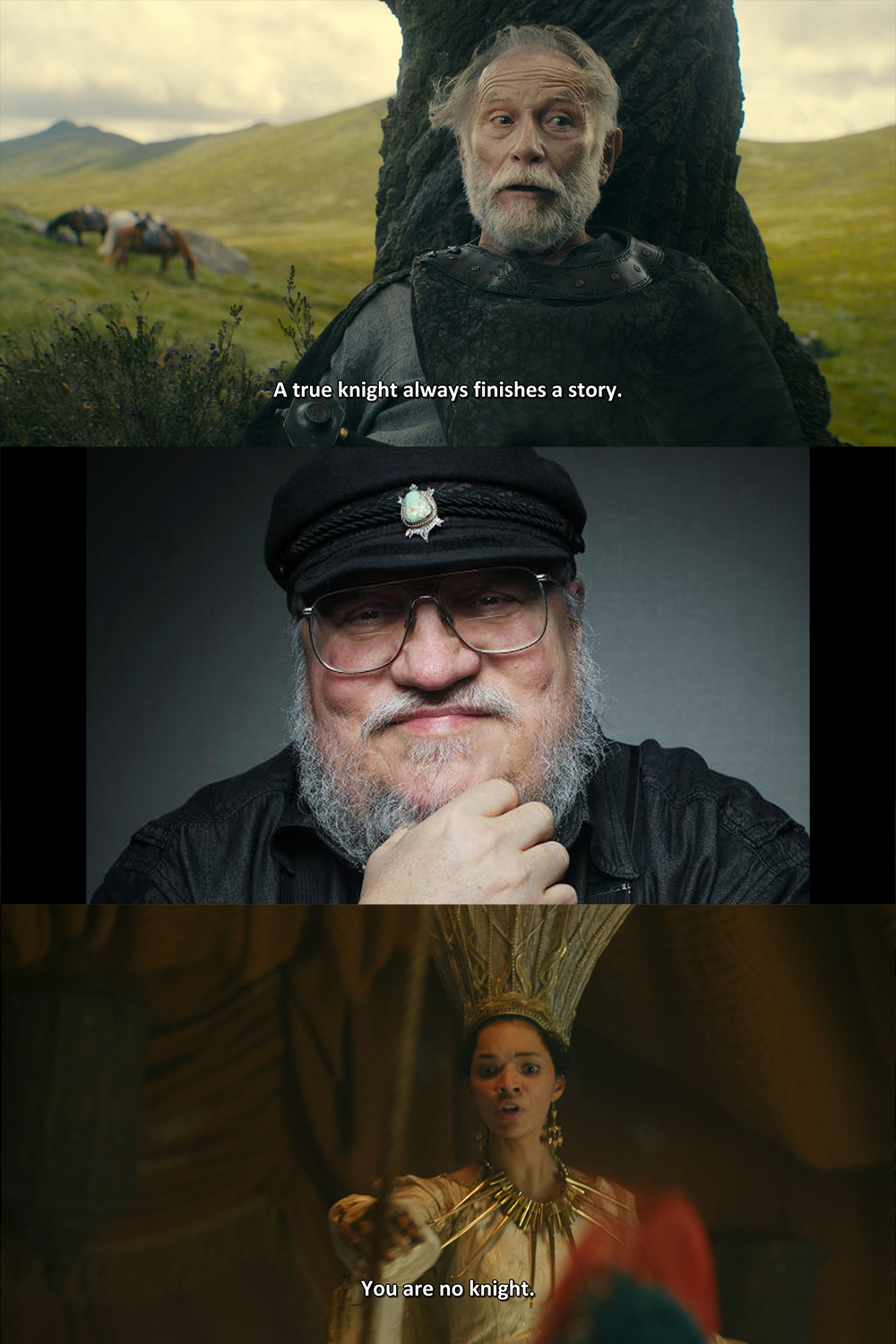 The Greens are obviously in the right because laying aside the firstborn son rule would totally destabilize the entire realm and cause a minor war every time a lord died right? Like the throne wasn’t really Viserys to give away just like Stannis later says he can’t just cede Shireen’s birthright