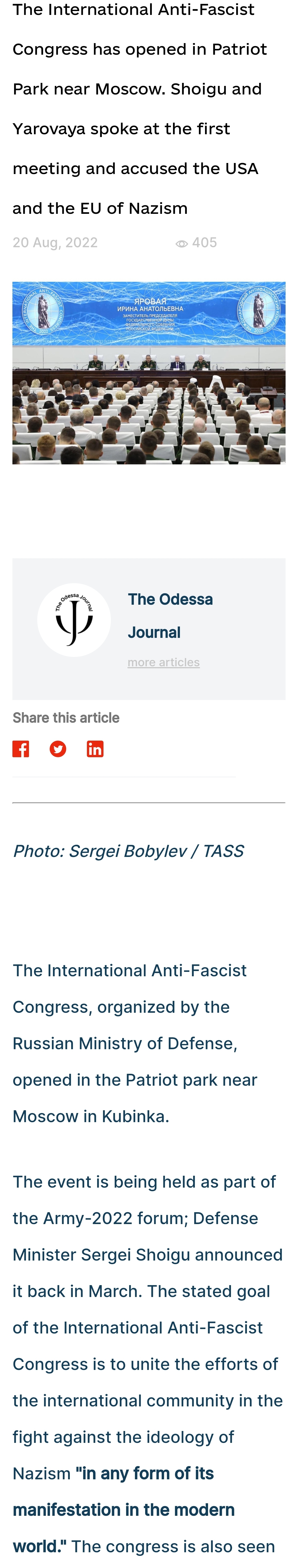 >>218202637>wasRussia holds annual interbational antifascist conferences.>one quoteThere is a century of Russians saying that.>what every leftist saysFtfy.