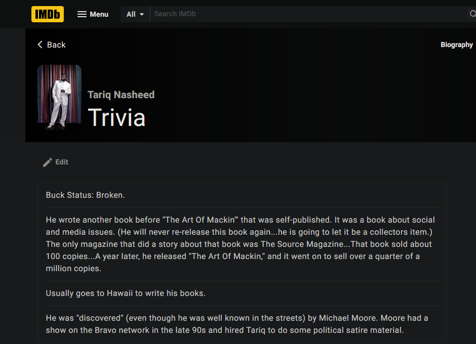 >>218201649Basically everything in the tariq cinematic universe is just made up. The people being interviewed literally just make it up, there's no historical research other than maybe talking to their grandmama