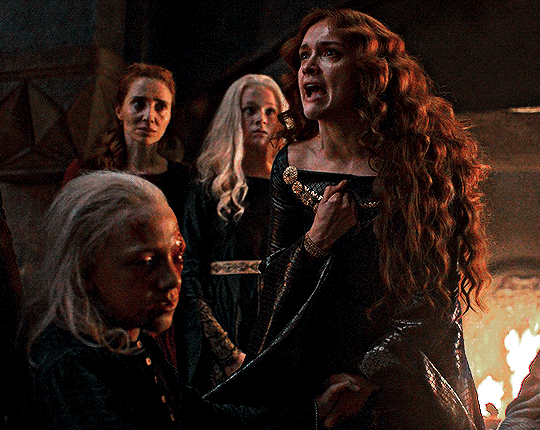 >Alicent could not even be trusted around her granddaughter; once when she was allowed to share a meal with the little queen, she terrified Jaehaera by suggesting she slit Aegon's throat while he was sleepingBased Alicent never surrendered
