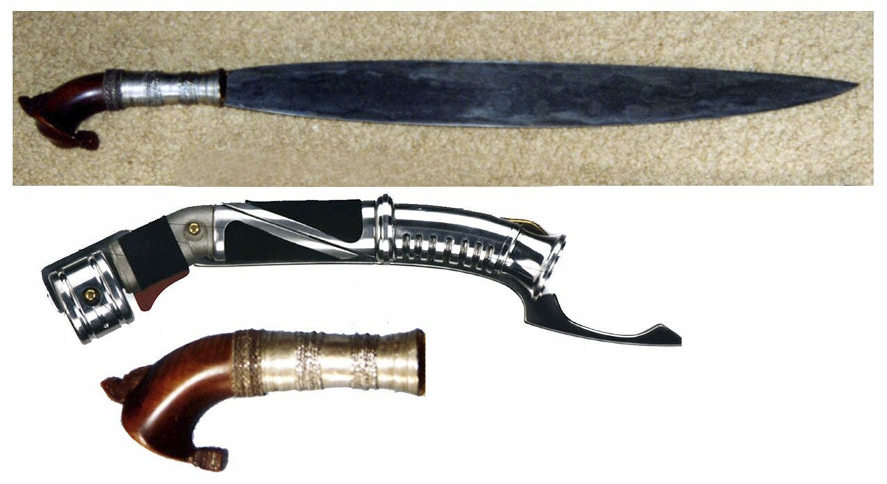 >>218204805I heard it was because Christopher Lee was in his 80s during filming and it was easier for him to handle a curved prop.