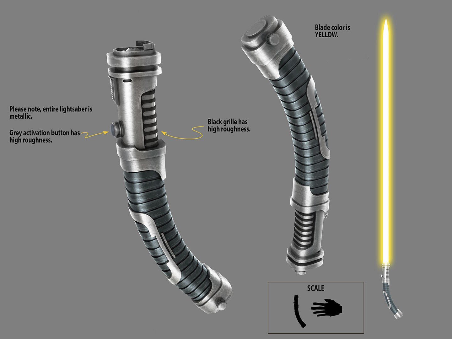 >curved hilt>yellow bladeit's like the perfect lightsaber