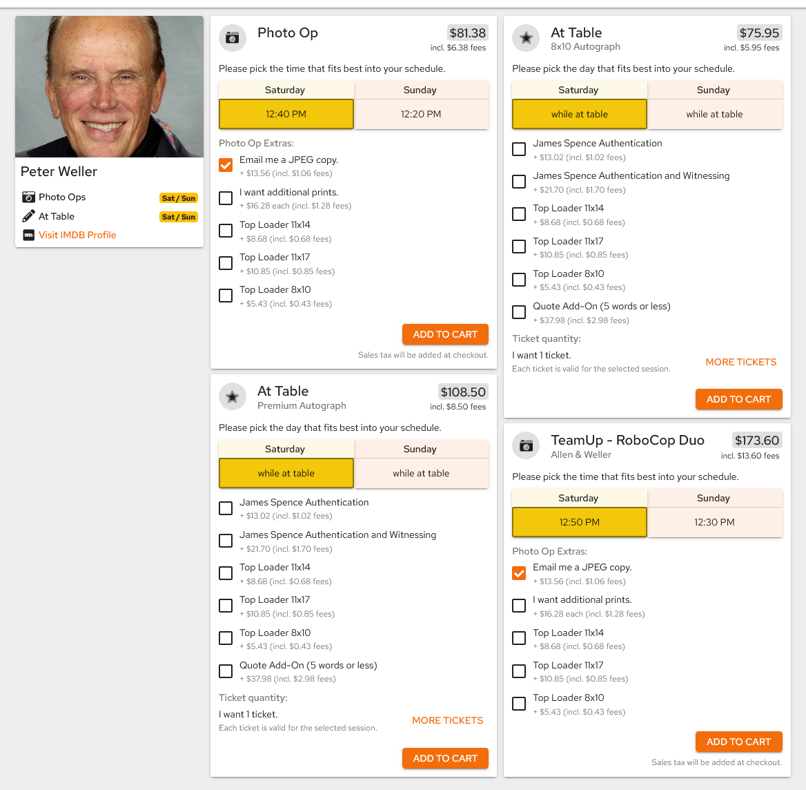 >>218210725>Hayden Christensen ($200 (autographs) / $235 (photo ops)), Ian Somerhalder ($105/$135), William Shatner ($120/$150/$100 (selfies)) and Chris Claremont as Guests of HonorMeanwhile the following names are lumped together with Critical Role, FOTM VAs and tons of randos:>Bryce Dallas Howard ($100/$115)>Cary Elwes ($60/$75)>Karl Urban ($100/$120)>Kristen Schaal ($60/$80)>Kyle MacLachlan ($90/$90)>Pom Klementieff ($75/$80)>Michael Rooker ($80/$70)>Nancy Allen (custom)>Peter Weller (custom - see pic)>Tom Skerritt ($60/$80)>Sean Gunn ($45/$70)>Cigarette Smoking Man from X-Files (at the age of 88) ($50/$60)Interesting how a few seemingly mastered the art of comic con hustle. The pricing has some oddities for sure: Shatner (who else?) having a dedicated selfie option, Rooker charging more for autographs than photos or MacLachlan working for a flat fee.