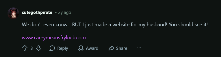 >>218210206>Google "Frylock voice actor">find a Reddit thread>his fucking wife is there posting in an old Reddit thread, months later, linking his website (which contains merch stores, paid autographs, a cameo link, an option to hire him, a GoFundMe ($200 out of $1.1k raised), etc.)I don't know if there's any more lore to it, but as far as I can tell he's just really not handling his finances well, and constantly broke.A lot of people were blaming Adult Swim for paying him poorly, but he got $2k per 11 minute episode, that was probably like 10 minutes of work.https://www.careymeansfrylock.com/