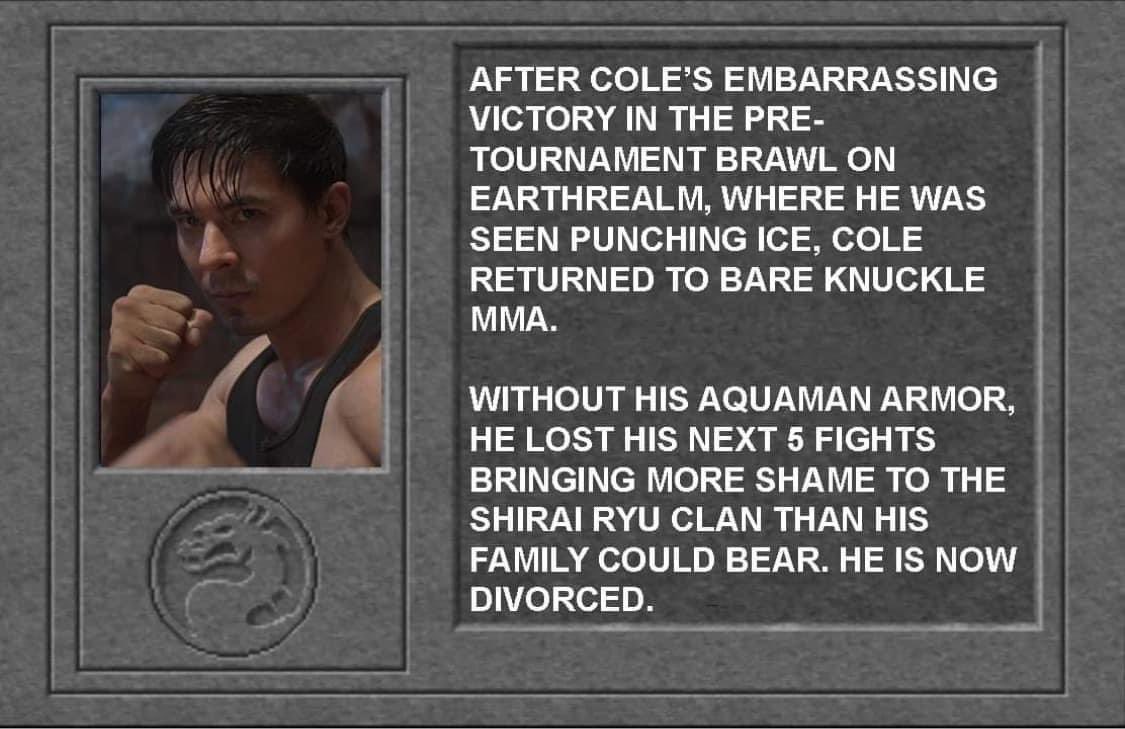 Test screening leaks>There is an actual tournament this time.>Johnny Cage and Kitana are the main characters. Shao Kahn is the main villain.>Cole Young, Liu Kang, Shang Tsung and Raiden have minor roles.>Kano is revived as one of the good guys. >Quan Chi doesn’t fight.>Arcanas sidelined, Cage never gets one. No not punch either.>Raiden spends most of the movie consulting with the Elder Gods, while Shang Tsung has been replaced by Quan Chi due to his failure to sabotage Mortal Kombat in the first movie.>Cage tries to seduce Kitana into helping them. While she doesn’t fall for it and was already planning to betray Kahn anyway, she seems to be a into him by the end.>Opening scene/fight 1: Shao Kahn VS. Kitana’s father King Jerrod in a flashback. Kahn stabs him with his pointy hammer.>Fight 2: Sonya Blade VS. Sindel. Sonya kills Sindel but Quan Chi revives her.>Fight 3: Cage VS. Kitana. Kitana wins because Cage is too busy trying to rizz her up to fight seriously.>Fight 4: Shao Kahn VS. Cole Young. Kahn smashes Cole’s head.>Fight 5: Jax VS. Jade. Jade wins.>Fight 6: Liu Kang VS. Revenant Kung Lao. Kang wins and kills Kung Lao.>Fight 7: Cage VS. Baraka. Cage wins but doesn’t kill Baraka.>Fight 8: Kang, Sonya and Jax VS. Shao Kahn. Kahn stabs Jax through the neck.>Fight 9: Raiden VS. Shang Tsung. Raiden punches him off a cliff. No body.>Fight 10: Cage, Jade and Kano VS. Noob Saibot. Saibot is dominating until Scorpion appears and wrecks him.>Fight 11: Liu Kang and Sonya Blade VS. Shao Kahn. Kahn stabs Kang with his hammer and he disappears in a flash of light.>Fight 12: Kitana VS. Shao Kahn. Kitana wins by stabbing Kahn’s eyes outs, avenging her father and freeing her people.>Movie ends with Earthrealm victorious and Quan Chi escaping after swearing revenge. Cage, Sonya, Kitana, Jade and Kano hold a candlelight vigil for their fallen comrades when Raiden appears and says there is a way to bring them back, setting up a sequel.