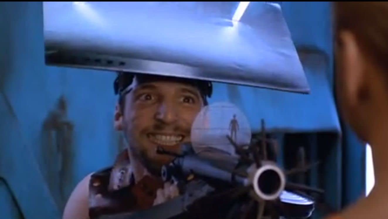 >>218221857What I like most about this scene is there is absolutely no reason for him to use that image as a hat. He could have just attached it to the camera. Really hammers home that he's an idio. You don't see writers put that sort of thought into tv and film these days. If this movie was made today this character and scene probably wouldn't exist and would be replaced with a two second pan of the cityscape outside his apartment