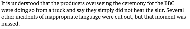 >>218230377Here's a news article on some other slurs he saidhttps://www.attitude.co.uk/culture/bbc-homophobic-tic-alan-cumming-tourettes-john-davidson-baftas-514637/here's one about the truckhttps://www.theguardian.com/film/2026/feb/23/bbc-new-apology-bafta-n-word-controversy-iplayer
