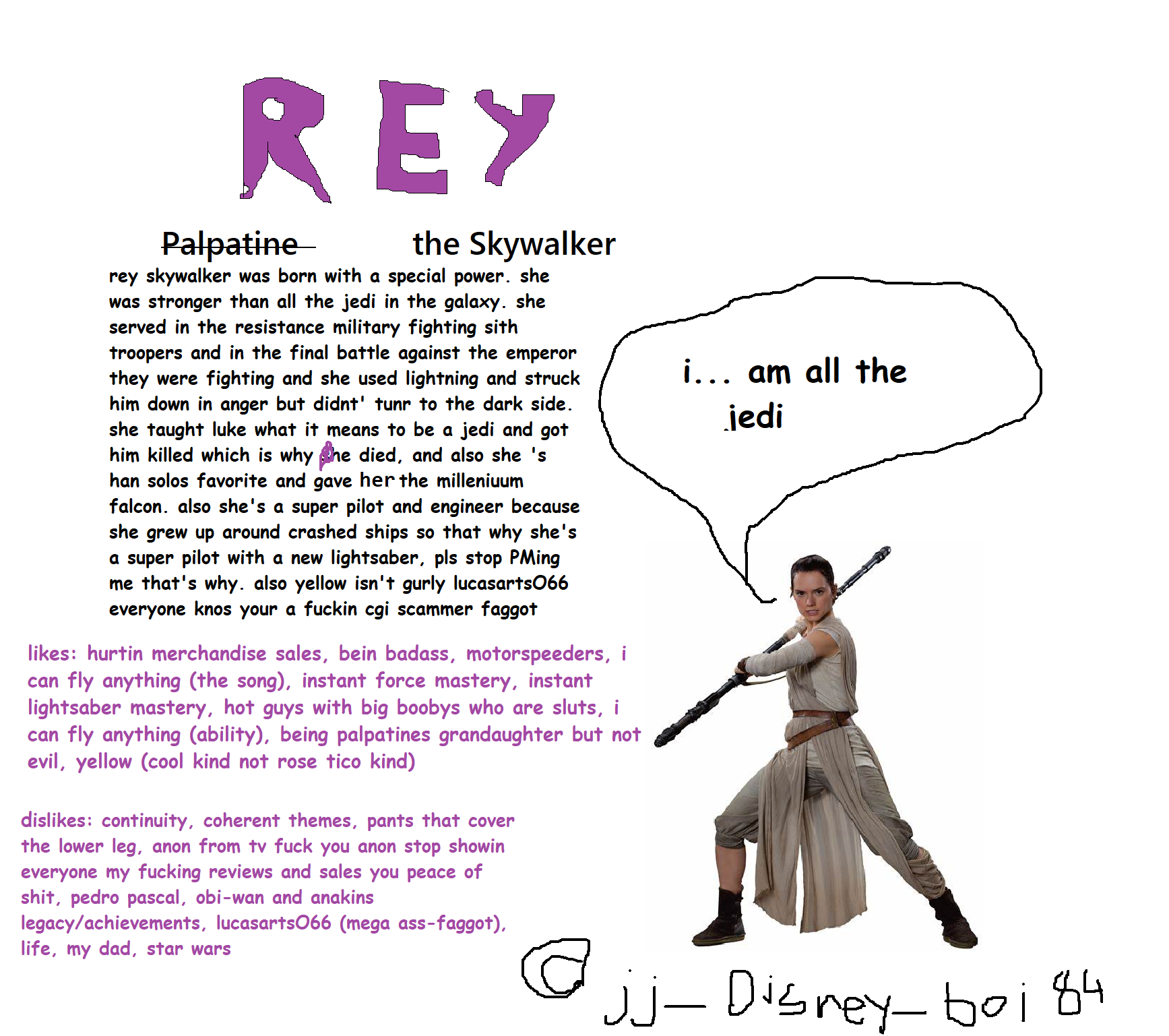 >>218230264>>Tries to salvage Star Wars after Rian Johnson fucked it upJJ fucked up first by undoing the entire OT and inventing Marey Sue so she could plunder the heroes' sacrifices. Don't pretend he's blameless, you fucking kike ape.