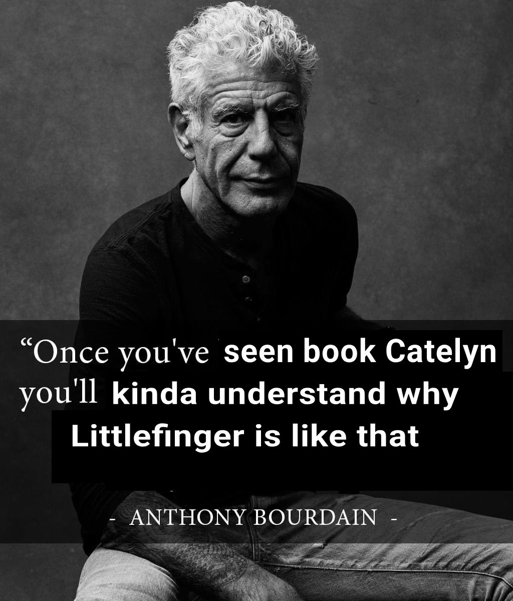 I thank George every time I read the books Cat lived long enough to find out Sansa was married to Tyrion