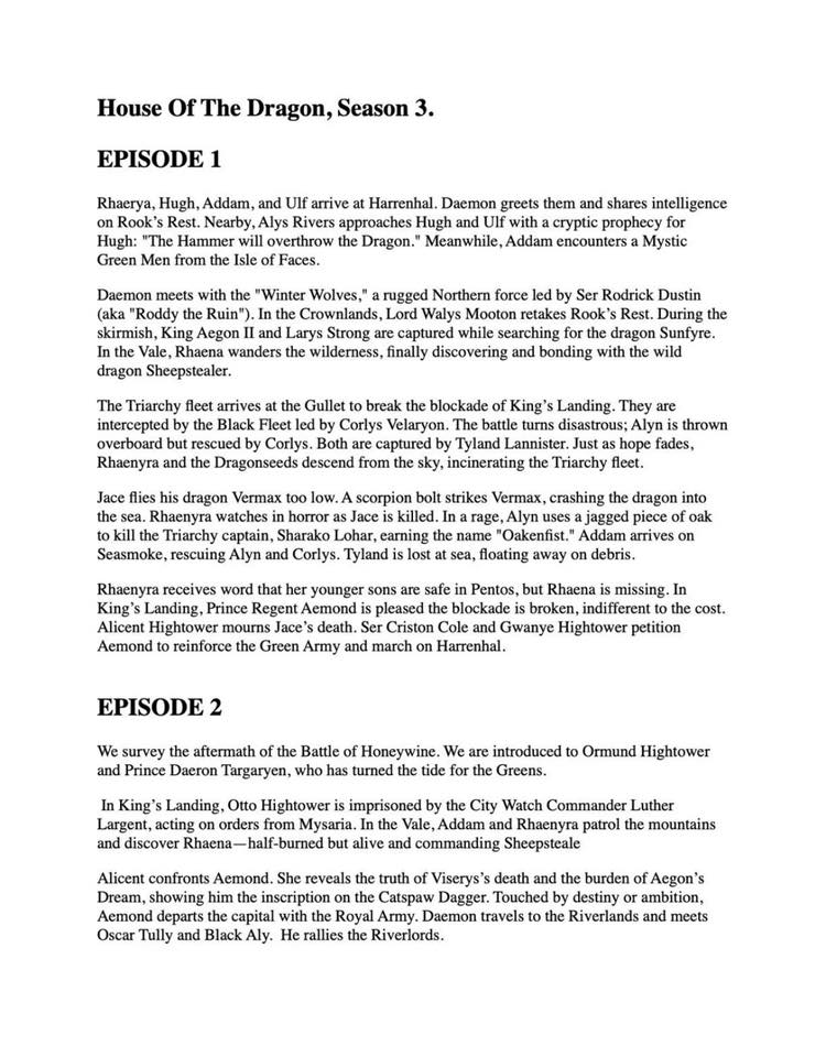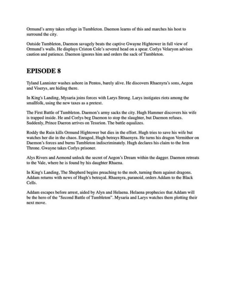 I'm a little worried about next season of Dunk. This season was a big tourney so there were a lot of memorable characters. Next season is pretty much just the old guy and the spider lady. I'm was hoping they'd "expand" the story a little by having a minor "Where is Egg? Track down Dunk!" subplot in the background with Maekar, but I guess they're not doing that. I'm sort of wondering how they'll fill six episodes. It's pretty much just an hour and a half long story at best, season 1 had some leeway with Dunk and Egg's backstory, the rest of the tourney guests, and Arlan.