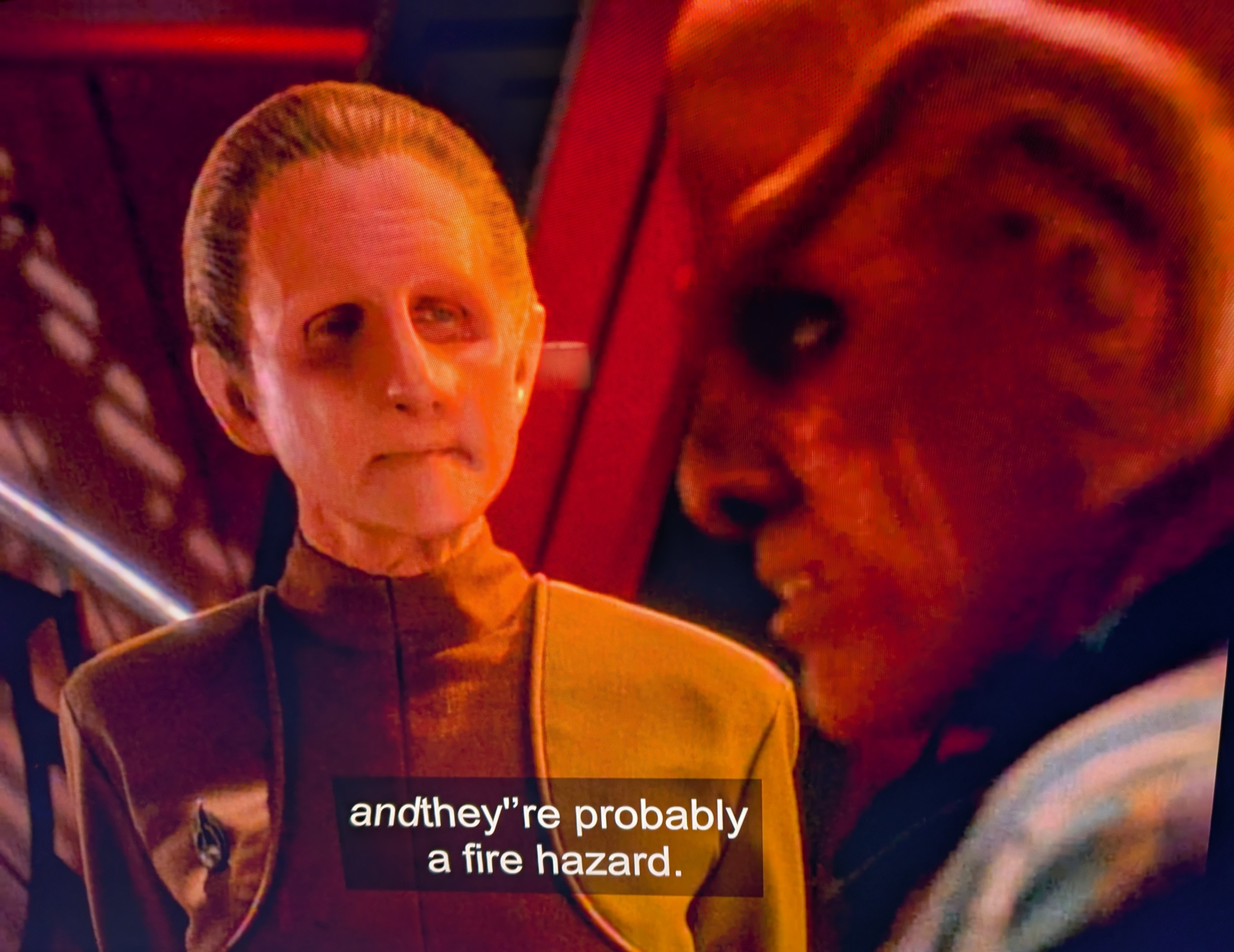 Fire hazards I relate to:Tuvok's birthday cake Jadzia's Var'hama candleThe Fire caves on BajorBringloidi distilling in Cargo Bay 2Whatever was happening here