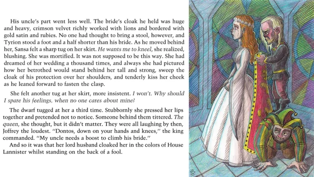 >The castle yard was full of eyes and ears. To escape them, they sought out Darry's godswood. There were no sparrows there, only trees bare and brooding, their black branches scratching at the sky. A mat of dead leaves crunched beneath their feet. "Do you see that window, ser?" Jaime used a sword to point. "That was Raymun Darry's bedchamber. Where King Robert slept, on our return from Winterfell. Ned Stark's daughter had run off after her wolf savaged Joff, you'll recall. My sister wanted the girl to lose a hand. The old penalty, for striking one of the blood royal. Robert told her she was cruel and mad. They fought for half the night . . . well, Cersei fought, and Robert drank. >Past midnight, the queen summoned me inside. The king was passed out snoring on the Myrish carpet. I asked my sister if she wanted me to carry him to bed. She told me I should carry her to bed, and shrugged out of her robe. I took her on Raymun Darry's bed after stepping over Robert. If His Grace had woken I would have killed him there and then. He would not have been the first king to die upon my sword . . . but you know that story, don't you?" >He slashed at a tree branch, shearing it in half. "As I was fucking her, Cersei cried, 'I want.' I thought that she meant me, but it was the Stark girl that she wanted, maimed or dead." The things I do for love. "It was only by chance that Stark's own men found the girl before me. If I had come on her first . . ." The pockmarks on Ser Ilyn's face were black holes in the torchlight, as dark as Jaime's soul. He made that clacking sound. He is laughing at me, realized Jaime Lannister. “For all I know you fucked my sister too, you pock-faced bastard,” he spat out. “Well, shut your bloody mouth and kill me if you can.”Jaime's arc in AFFC is so fucking kino. The show could've never done justice to it.