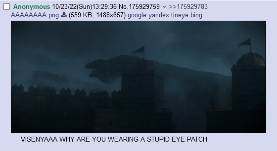 >>218304803>>218304880I had almost purged that Arya nonsense from my brain. Then what the fuck was their prophecy even about?