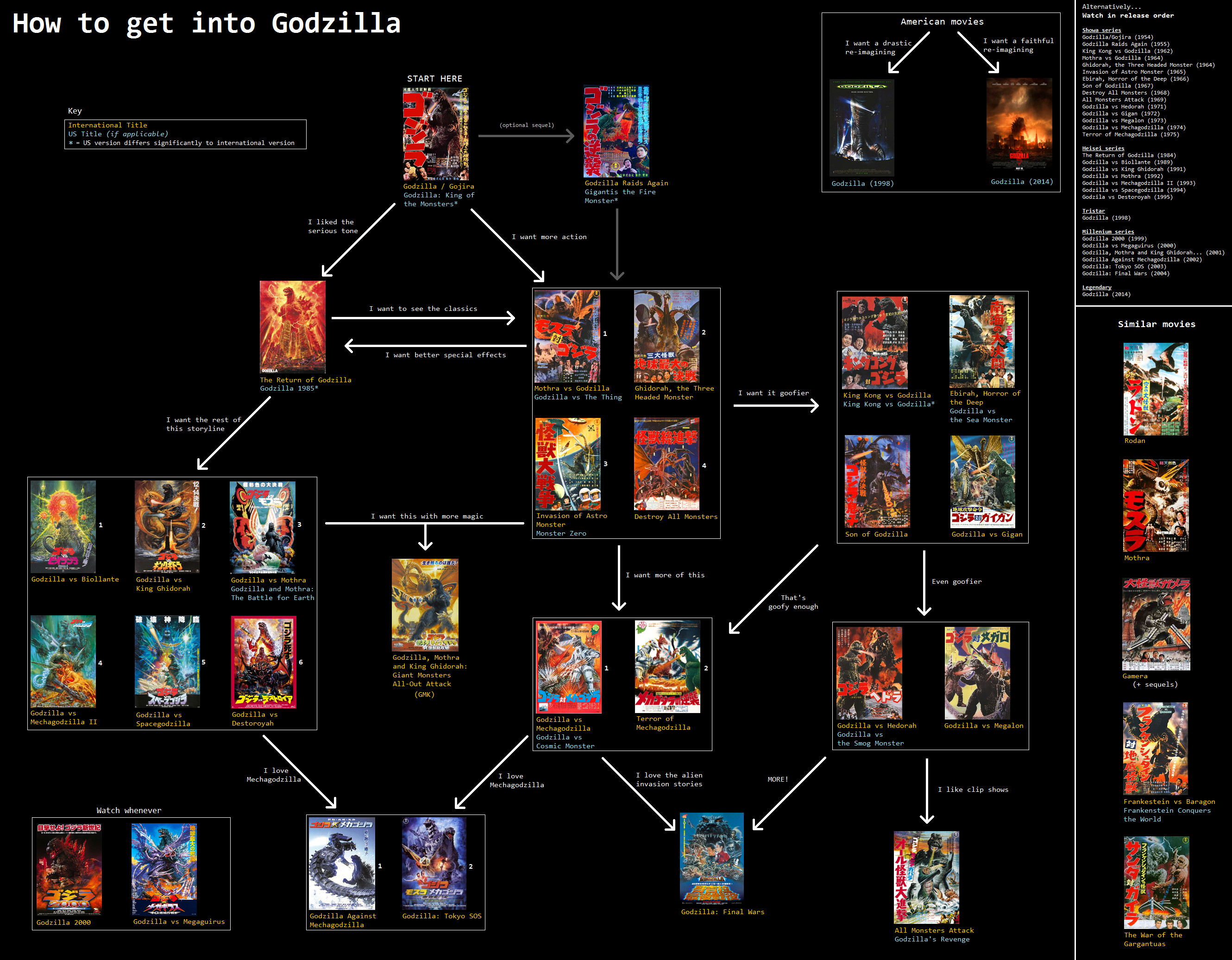 >>218418926the 50s-70s movies share a continuity. then the 80s-90s movies have their own continuity (the original 1954 movie being still canon). However pretty much any Godzilla movie can be watched on its own