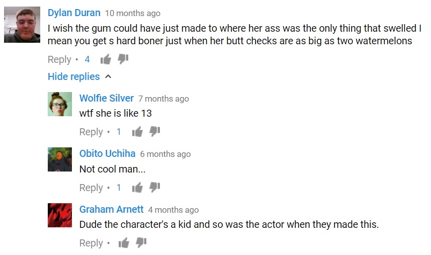 >>218421040>you get s hard boner just when her butt cheeks are as big as two watermelonscouldn’t have said it better myself. also dylan is obviously a kid himself