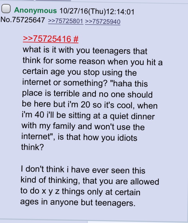 >>218421337I was 30 back in 2007. On another message board there were mentions of this 4chan site where there was apparently total chaos and rickrolls and memes. Decided to check it out.It's current year and I'm almost 50 now. And still here. If you'd see me in real life you'd see an upper middle class normie, wife, kids, job, and two cars in the garage. You wouldn't even suspect I'd even heard of this place.But the pull of anonymously calling people niggers and fags is strong.