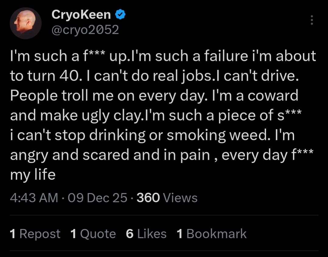My mom just said I can't spend 100 dollars on the official fishtank telegram. I'm fucking crying right now. I'm 33 and never had a gf.