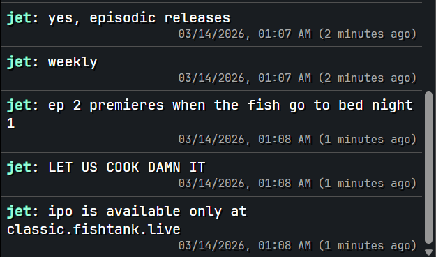 >>218512223>ipo available only at classic.fishtank.live because wes forgot to code it on the new site.