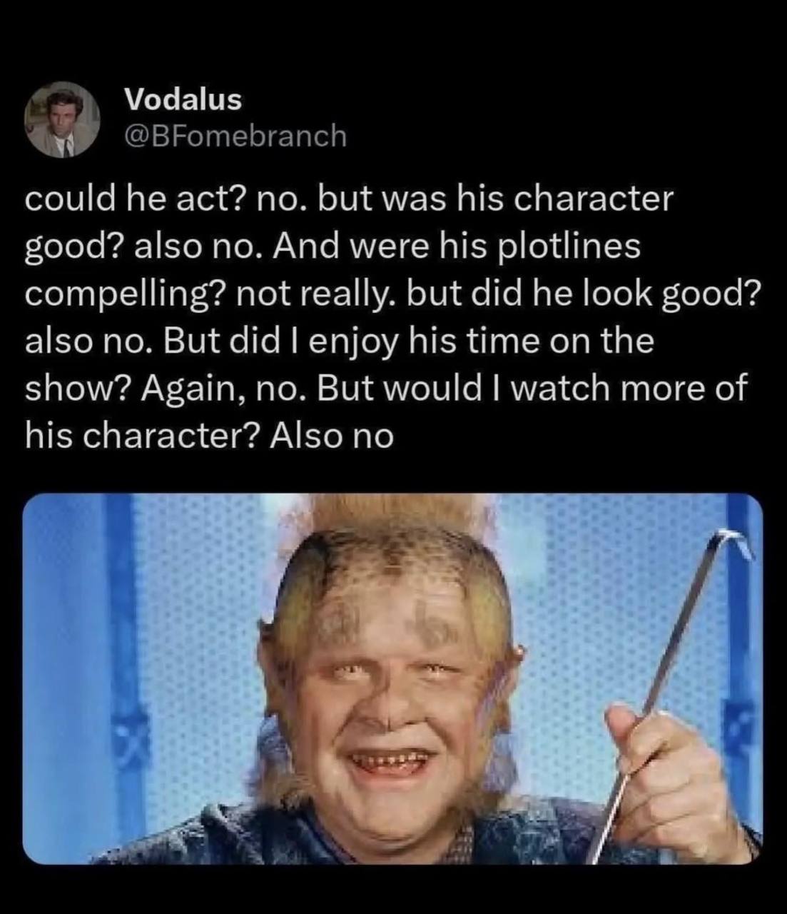 Personally, I think they should have kept Picard's gargoyle fap hand for the rest of the series