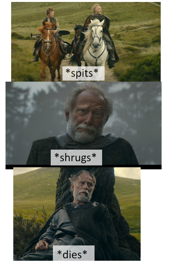 >>218518487>Times when show Dunk was smarterSecretly sneaking up on the government and royal elite to spy on them is not smart. Dunk should have been killed on the spot by guards, or arrested and tortured until he confessed to something.They kept Baelor's lines from the book ("we are the intruders here") which make no sense in the new show context.