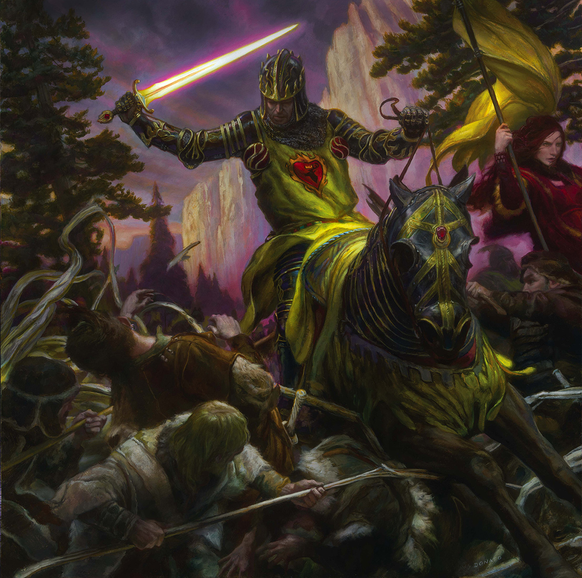 >And he'd held his own against the Smiling Knight, though it was Ser Arthur who slew him. What a fight that was, and what a foe. The Smiling Knight was a madman, cruelty and chivalry all jumbled up together, but he did not know the meaning of fear. And Dayne, with Dawn in hand… The outlaw's longsword had so many notches by the end that Ser Arthur had stopped to let him fetch a new one. "Never should have come here," the robber knight told him as they resumed, though he was bleeding from a dozen wounds by then.
