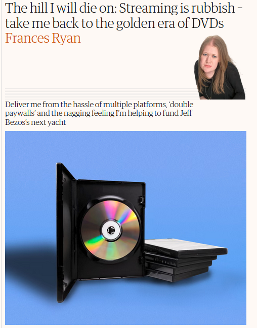 I don't miss DVDs to be quite honest. Piracy has never been easier than right now and I would just pay for streaming if they had better content.