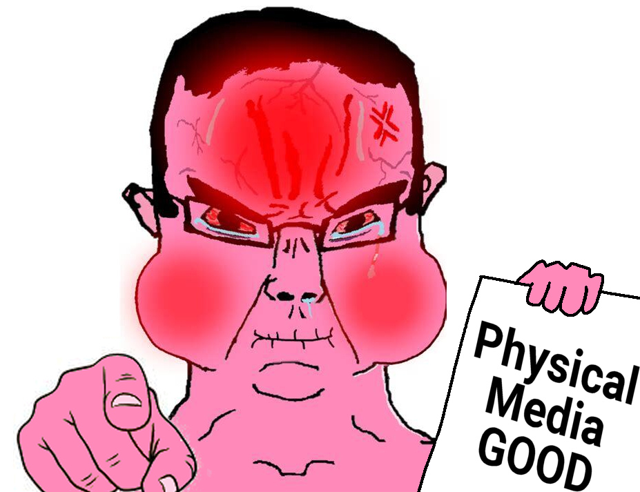 >all of a sudden normalfags like physical media againthis shit is so disingenuous i hate it