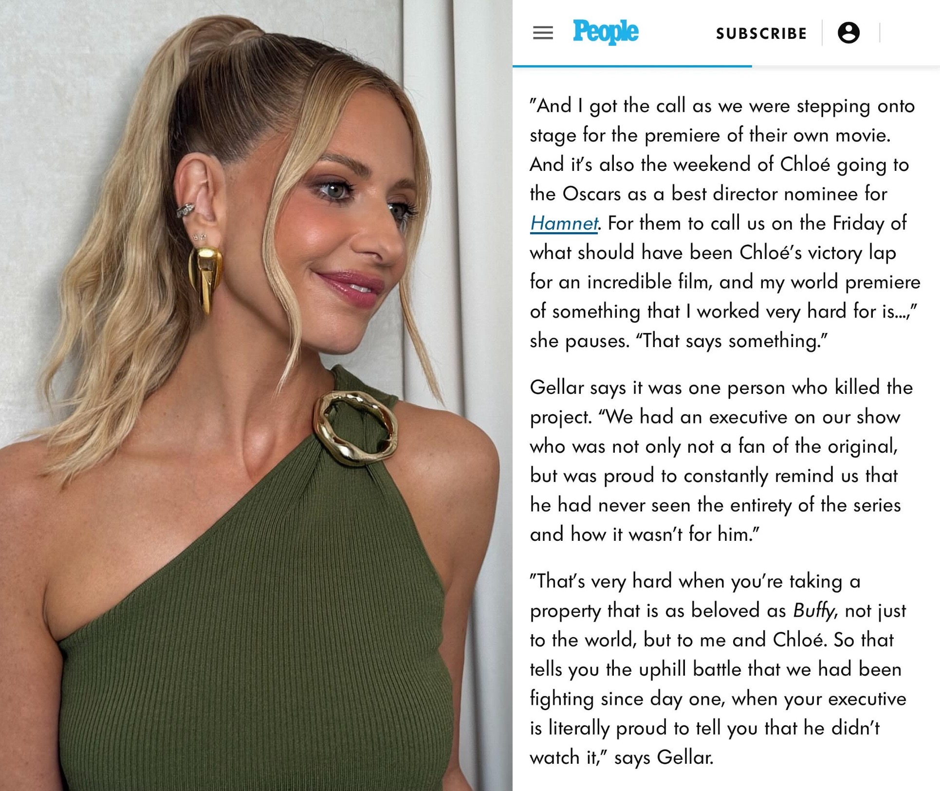Sarah Michelle Gellar claims one male executive was responsible for killing the BUFFY sequel series