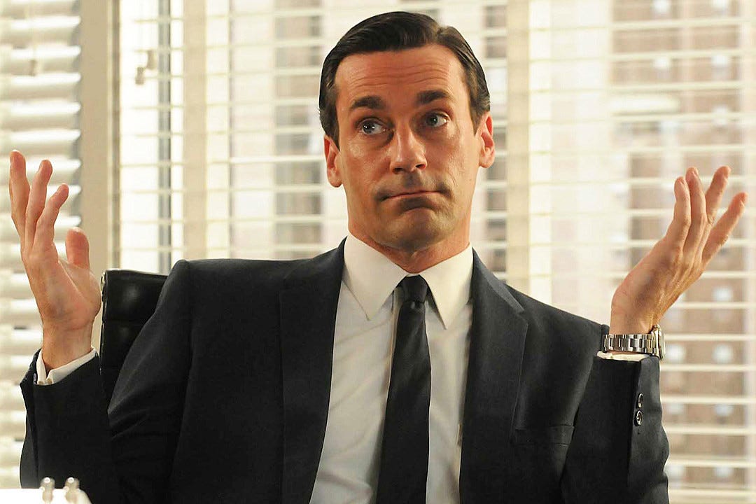 >>218615443Suppressing and lying are the only path forward besides indulging. This is especially true if one wishes to rise above their lot in life, like Don Draper. Suppressing to keep your own mind off of it. Lying to gain social status.