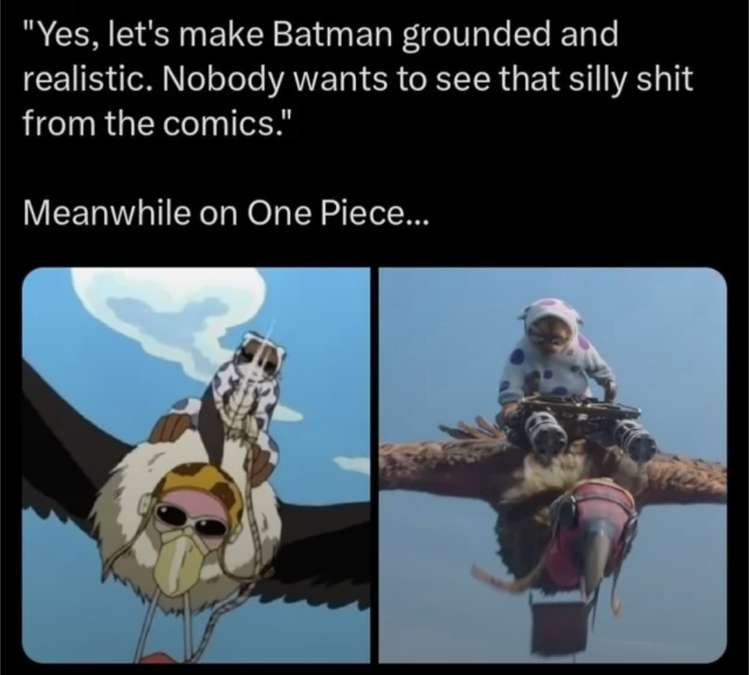 >>218616880considering Batman appeals to based GenXers and educated millennials while One Piece appeals to braindead zoomers and alphas, yea that'd be correct