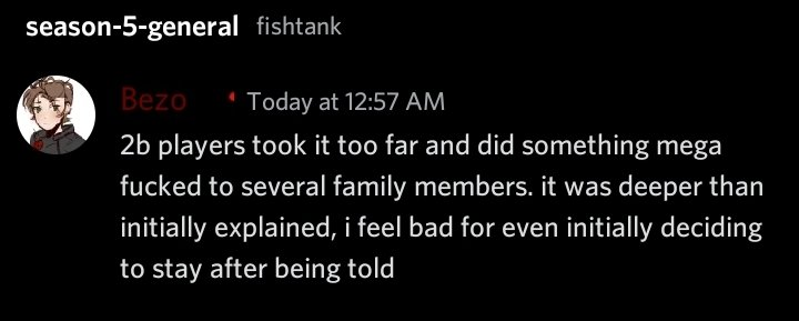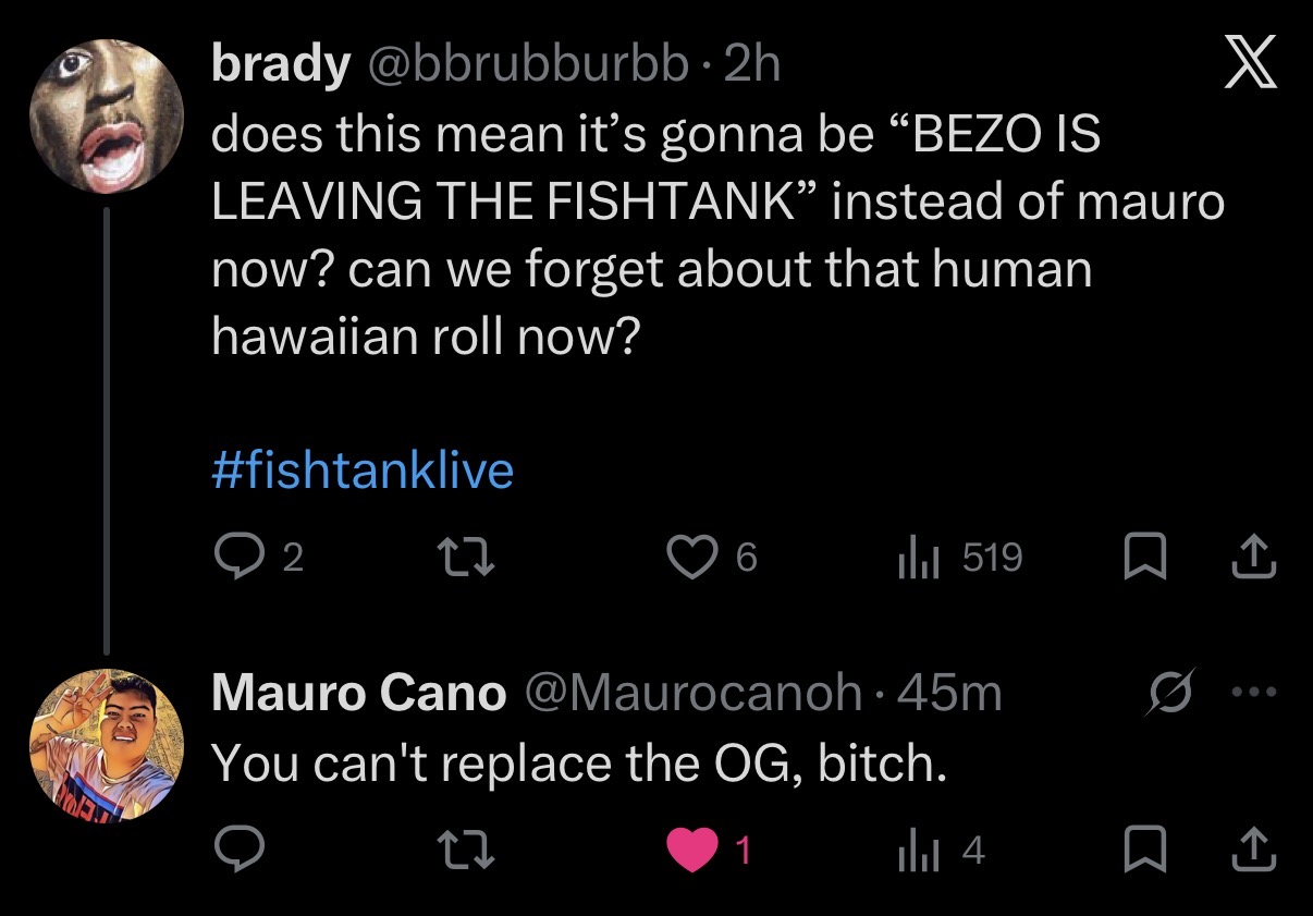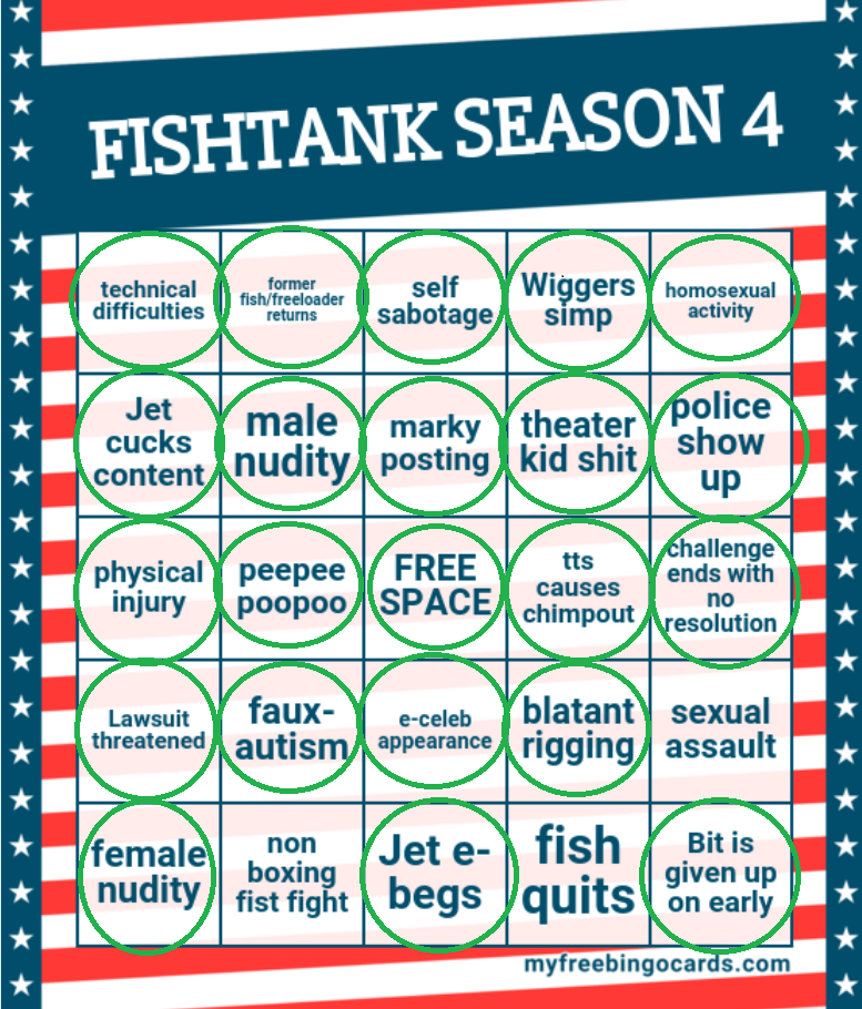 >>218621885>did anything happen yetno the season is a flop so far. there's no way a season of fishtank improves and we're starting from a low point right now so im pretty sure im going to bail.