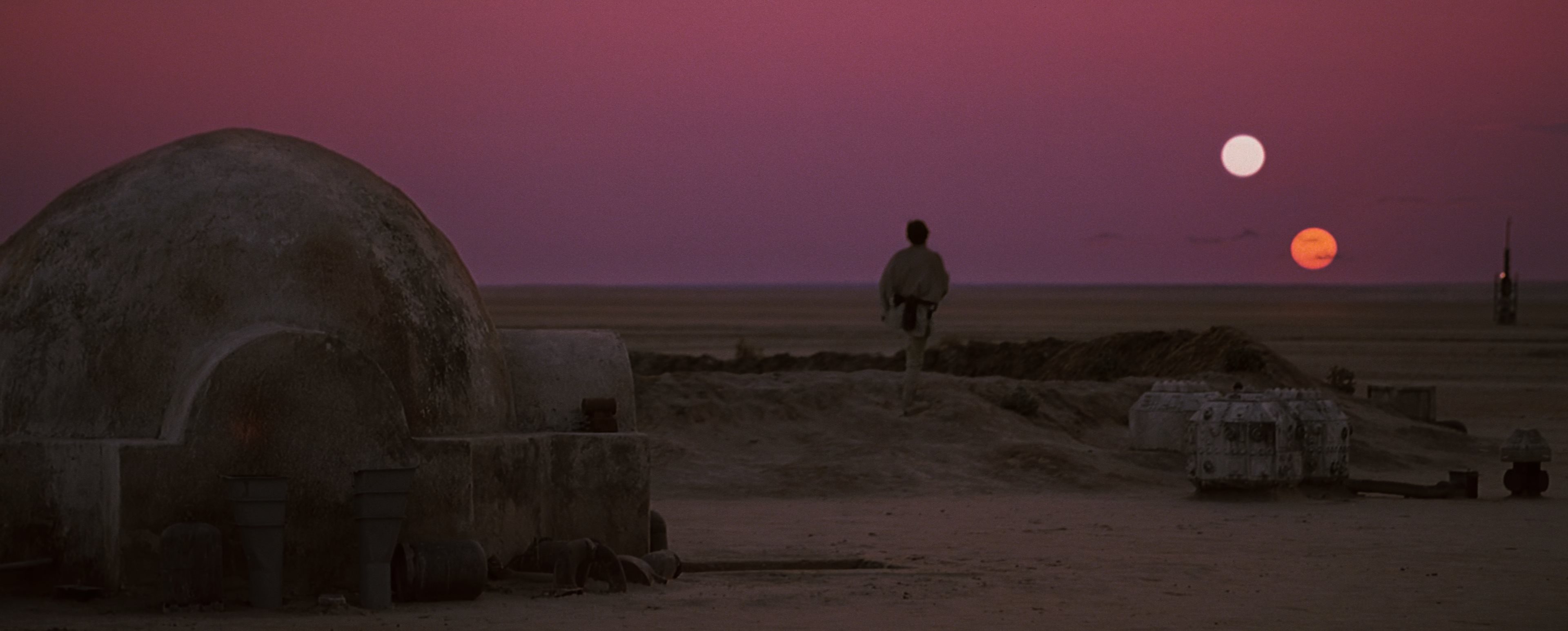 I love the part in Empire where the Falcon arrives in Cloud City. Suddenly there is all this color. The first half is snow, whites and greys of the Empire. Then the clouds at sunset at Bespin and visually its gorgeous.