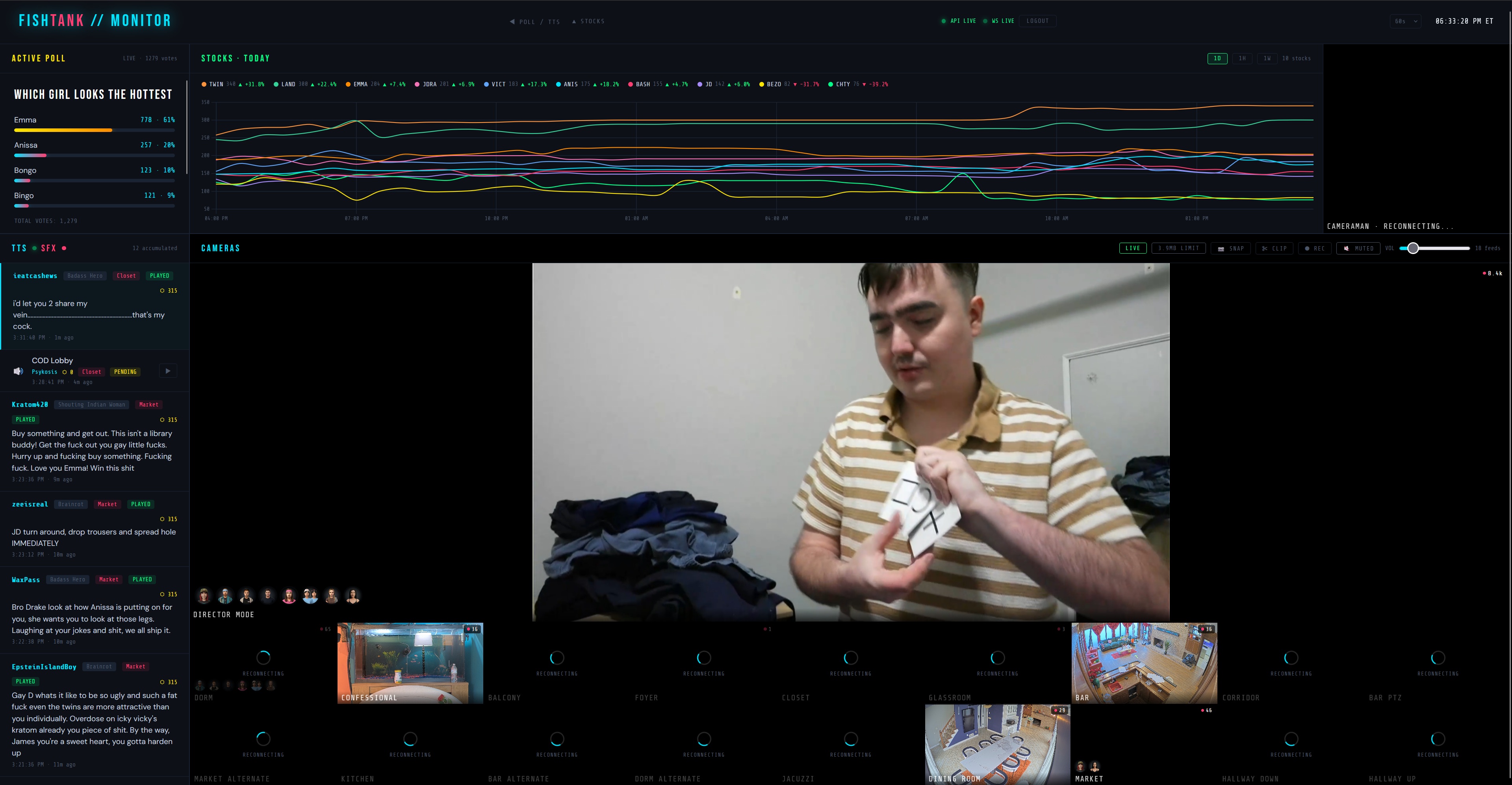 I have watched every single day of fishtank, multiple hours a day, since the very beginning. some days I would watch a few hours, some days were twelve plus. I am not exaggerating when I say fishtank is dead. this season has been a dud and this day in particular is among the worst in history