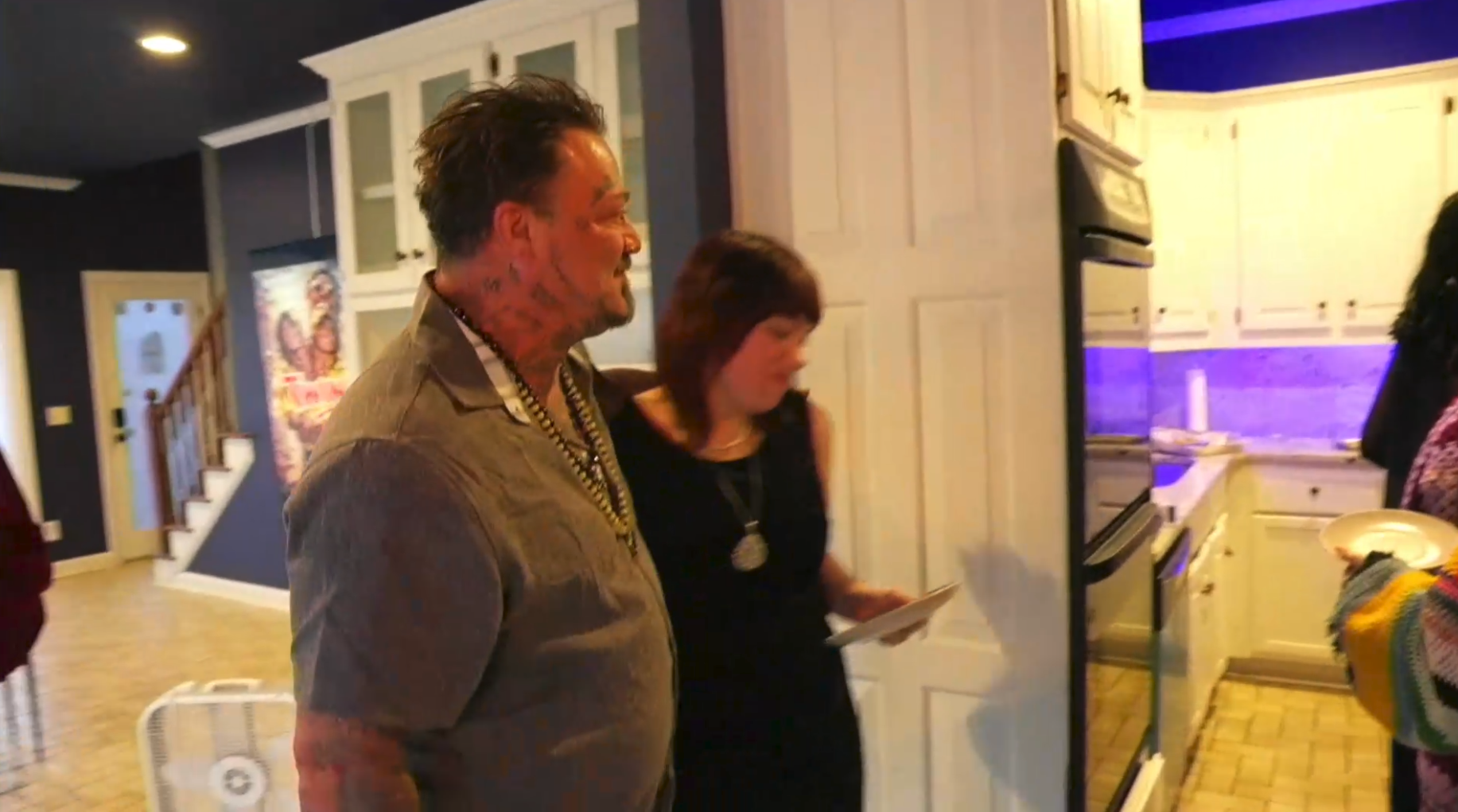 >Crashes into the kitchen